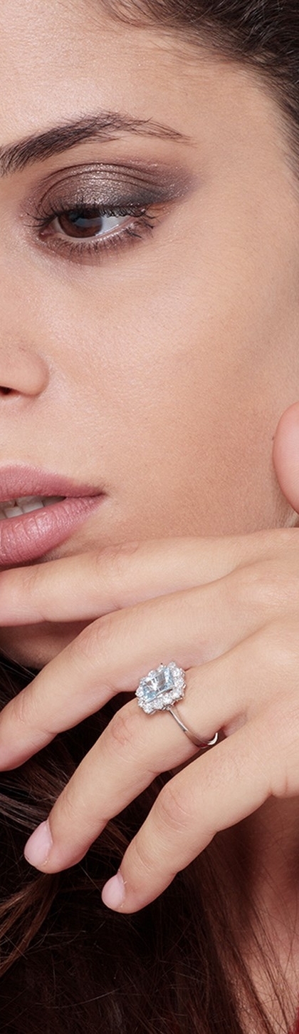 Aquamarin Halo Ring mit Diamanten Weißgold 750
