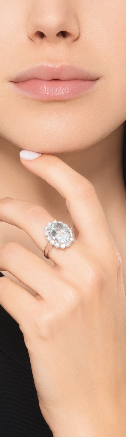 Aquamarin Weißgold Halo Ring mit Diamanten
