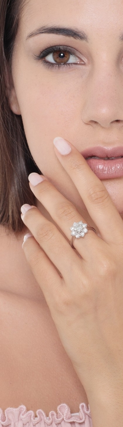 Damenring mit Blume aus Diamanten Weißgold 18K