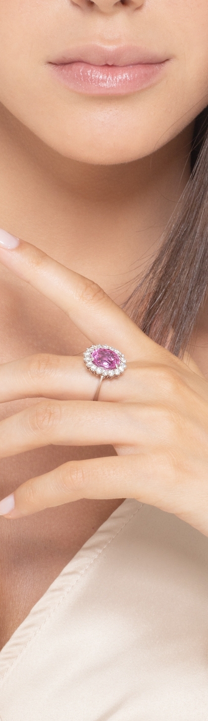 Halo Damenring Weißgold 750 mit Rosa Saphir und Brillanten