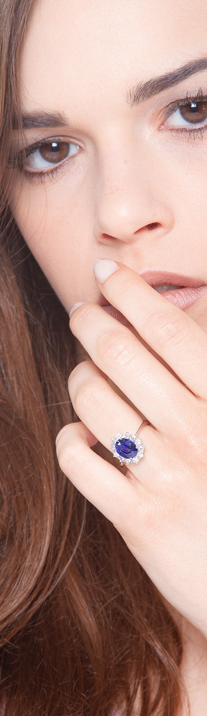 Halo Ring aus Weißgold 750 mit blauem Saphir und Diamanten