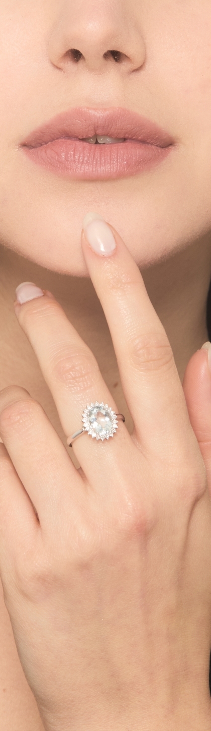 Halo Ring mit Aquamarin und Diamanten 18K Weißgold