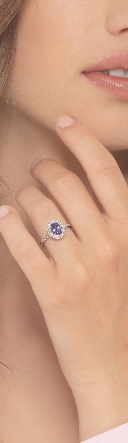 Halo Verlobungsring mit Diamanten und Tansanit