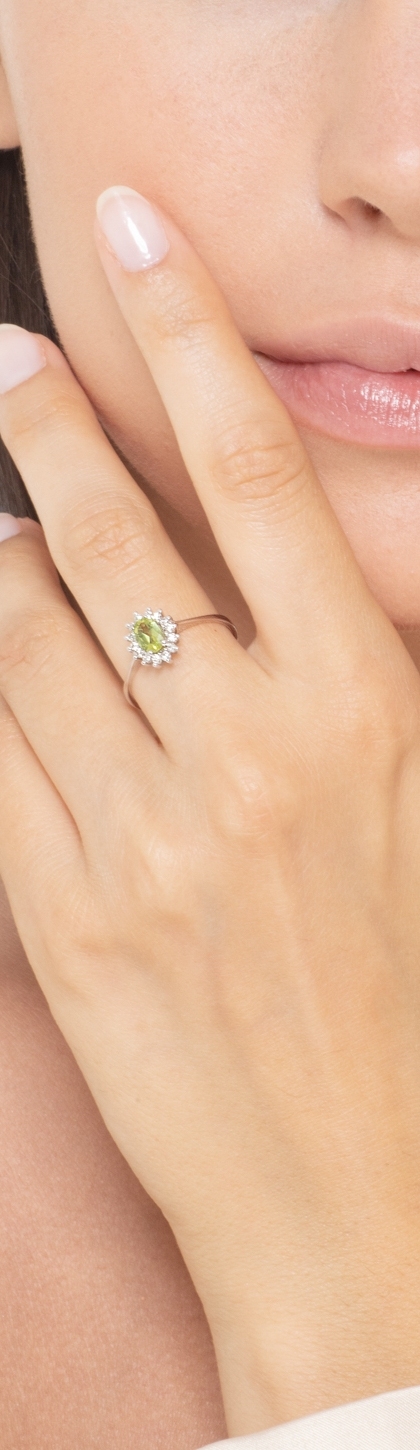 Peridot Halo Ring mit Diamanten Weißgold 18k