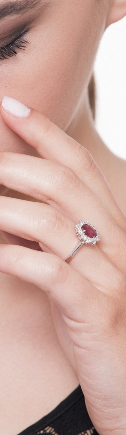 Ring aus 750er Weißgold mit Rubinstein und Brillanten