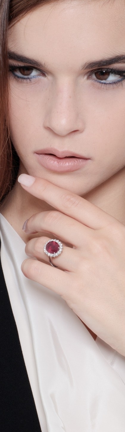 Ring aus Weißgold mit Rubin- und Brillantbesatz