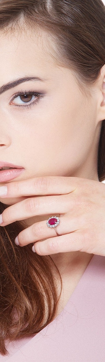 Rubin Ring aus 18k Weißgold mit Diamanten