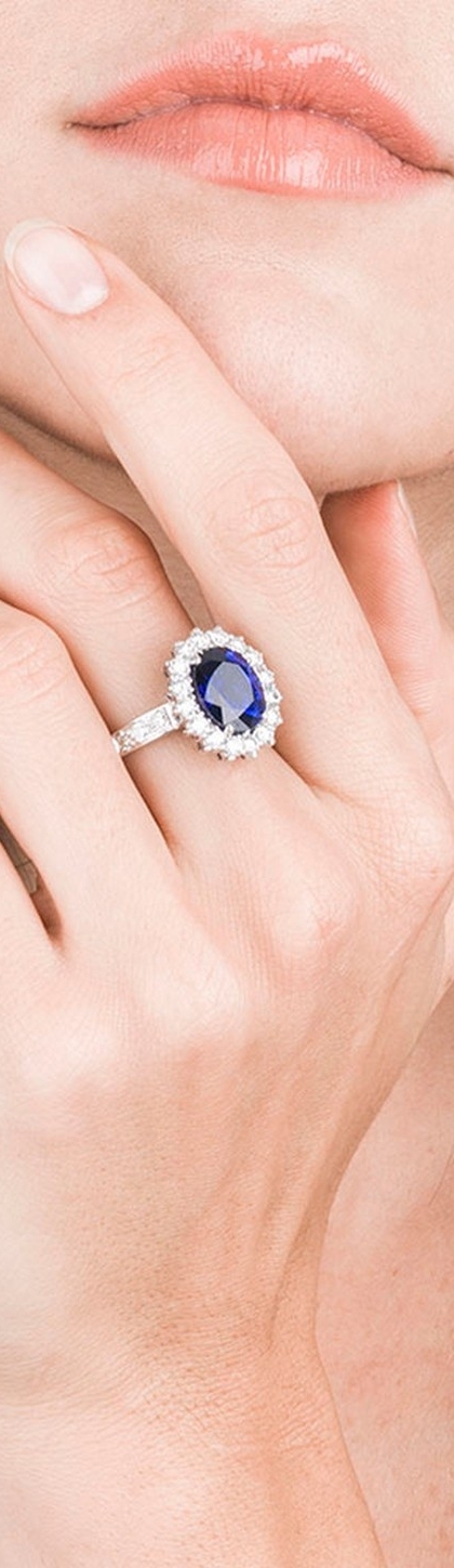 Saphir Ring mit Diamanten Damen 18K Weißgold
