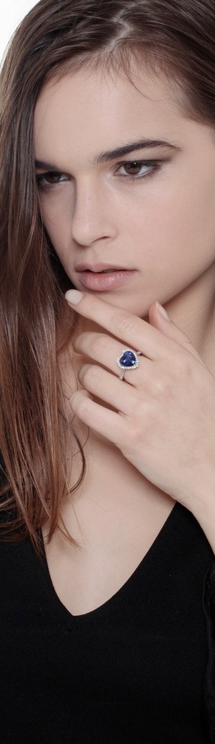 Weißgold Ring mit Herz aus blauem Saphir und Diamanten