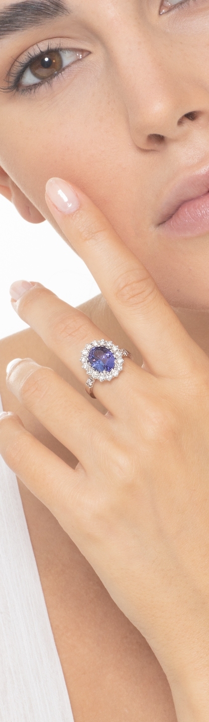 Weißgold Ring mit Tansanit und Diamanten