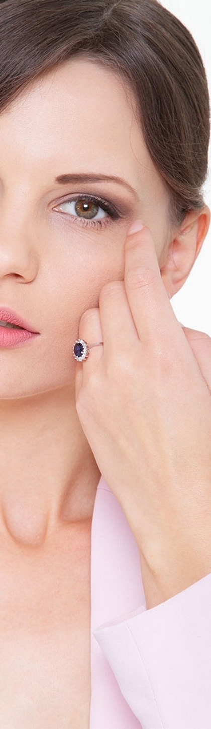 Weißgold -Verlobungsring mit Saphir