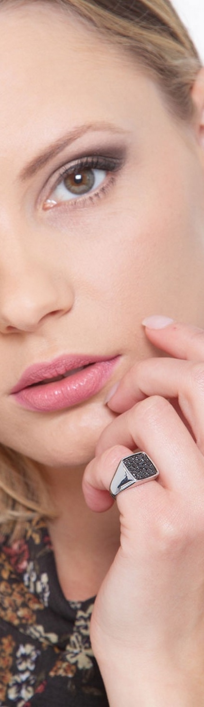 Pinky Ring aus Weißgold mit schwarzen Diamanten