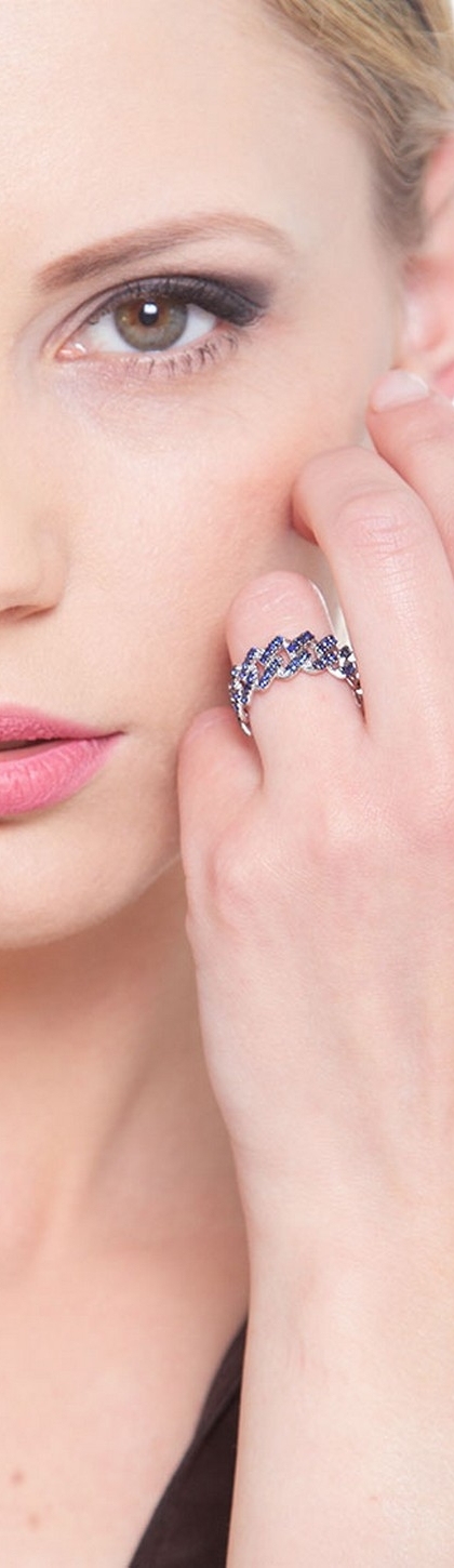 Cuban Link Ring aus 18K Weißgold mit blauen Saphiren