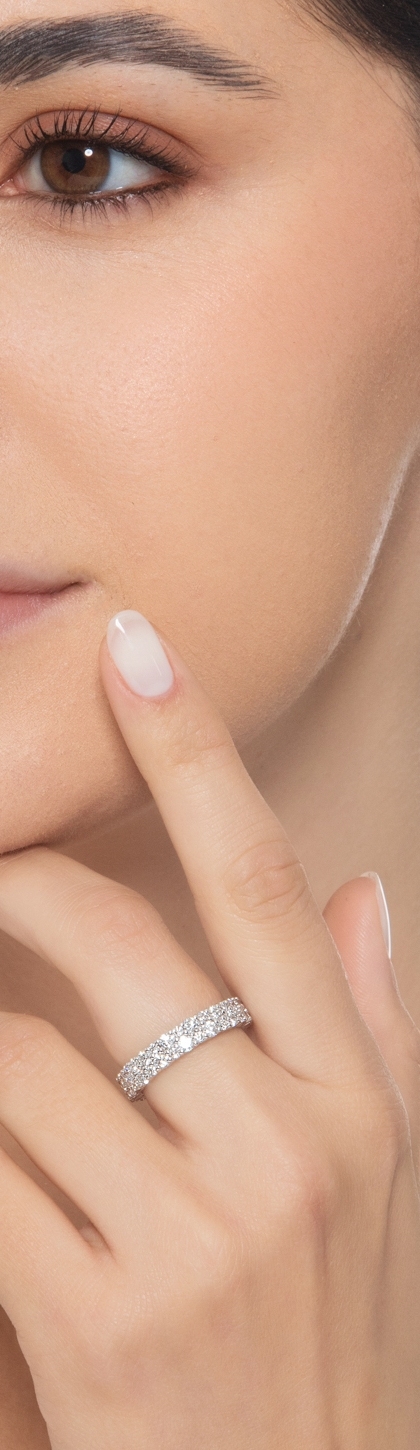 Weißgold 18K Memoire Ring mit zwei Reihen von Brillanten