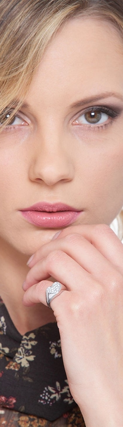 18k Weißgold Siegelring mit einem herzförmigen Pavé von Brillanten, Farbe H, Reinheit VS.