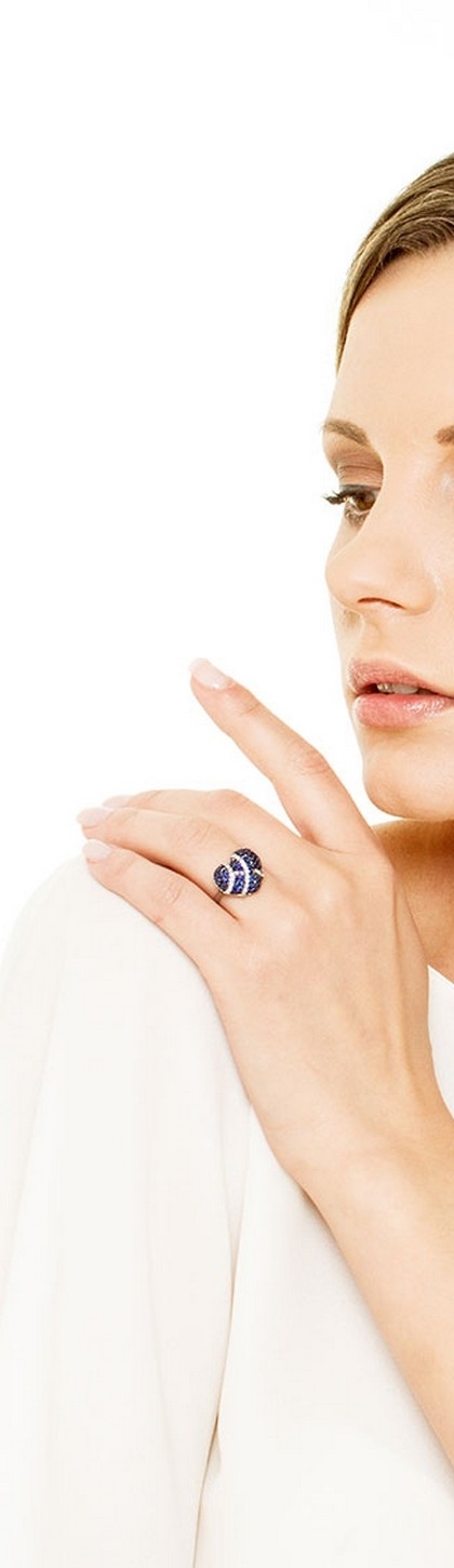 Herzring Weißgold 750 mit blauen Saphiren und Diamanten