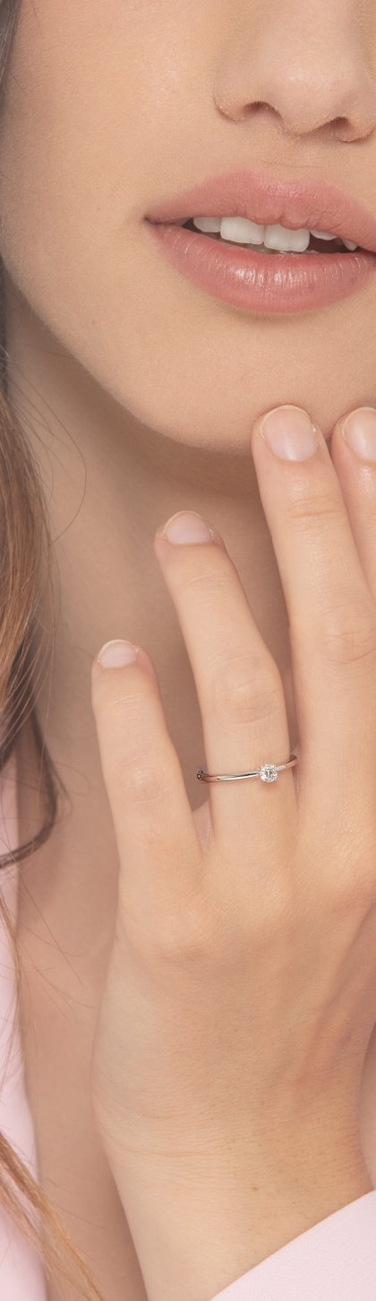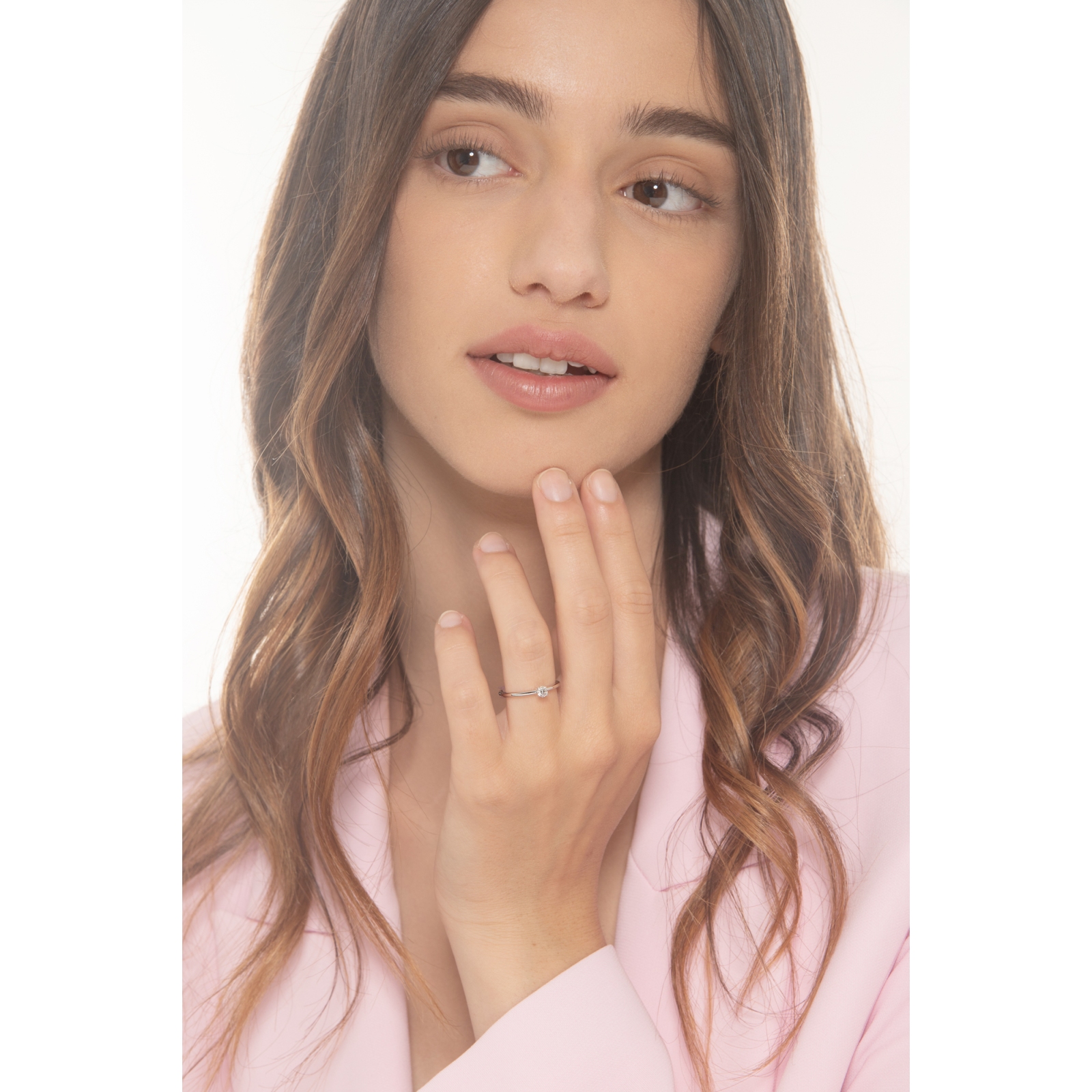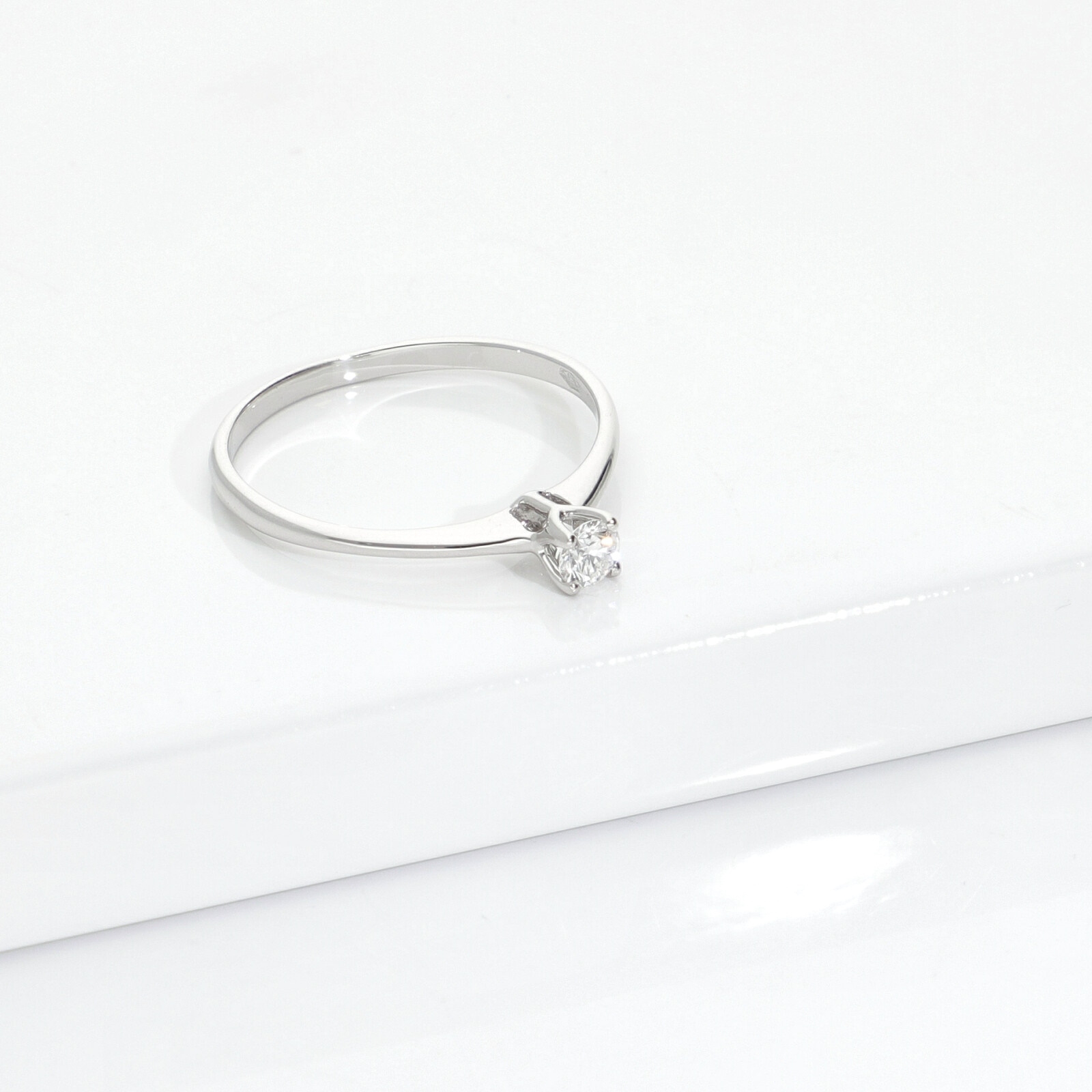Weißgold kleiner Verlobungsring mit einem 0.15 Karat Diamanten Brillantschliff, Farbe H, Reinheit VS, in einer 4 Krappenfassung