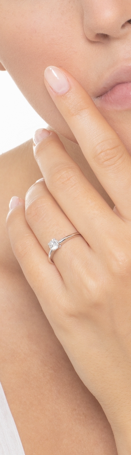 Weißgold 18 Karat Verlobungsring mit einem Diamanten Brillantschliff, Farbe H, Reinheit VS, 0.40 kt in einer 4er Krappenfassung