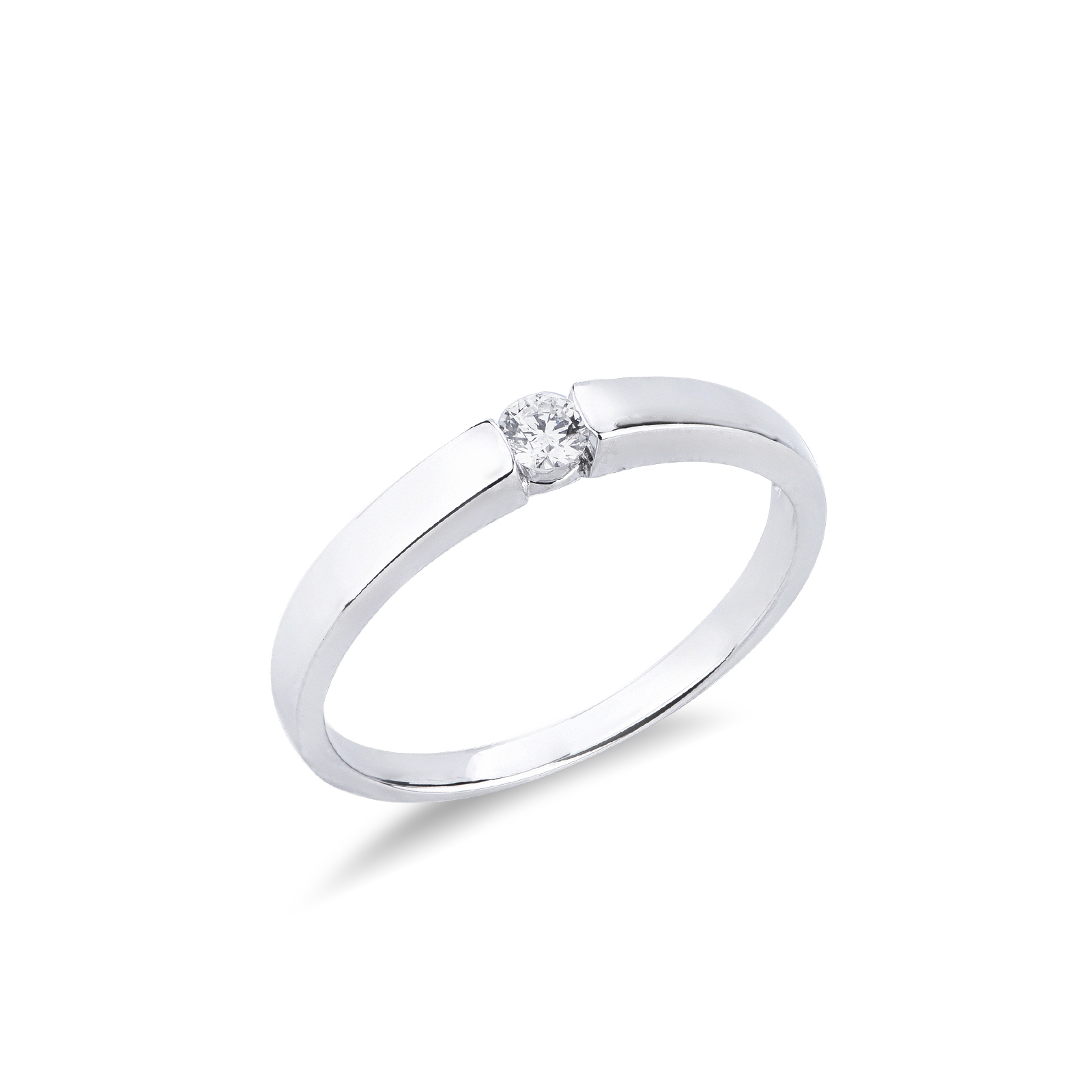 Solitärring Spannfassung Weißgold mit 0.10 kt Diamant
