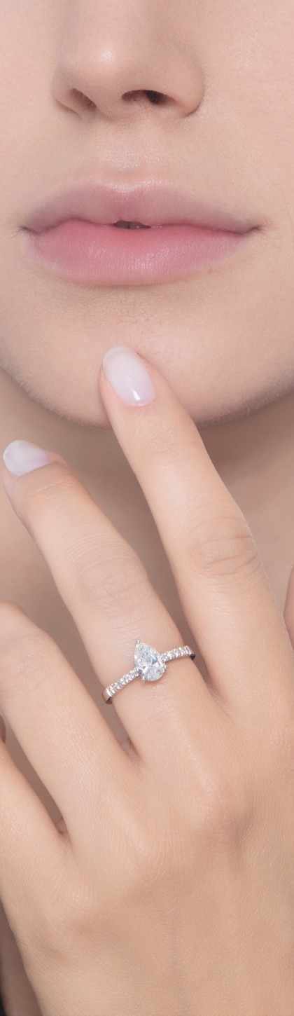 Verlobungsring aus Weißgold 18k mit Diamant Tropfenschliff GIA 1.00 kt