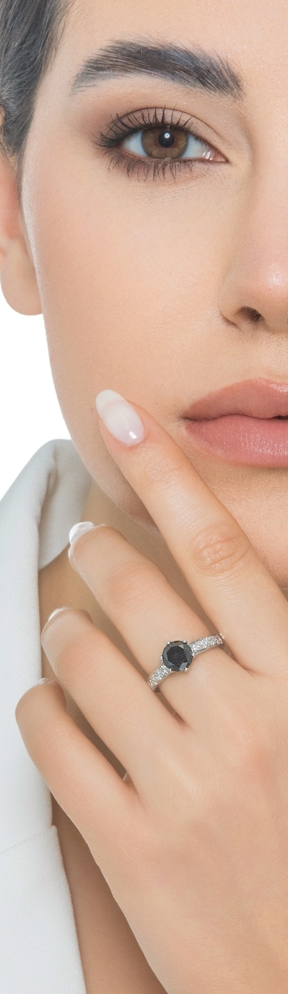 Verlobungsring mit schwarzen Diamant Weißgold 750
