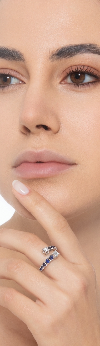 TOI ET MOI Ring mit blauen Saphiren und zwei Brillanten Weißgold 18K