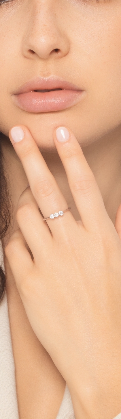 Weißgold 18K Ring mit drei Diamanten Brillantschliff, Farbe H, Reinheit VS, 0.30 kt