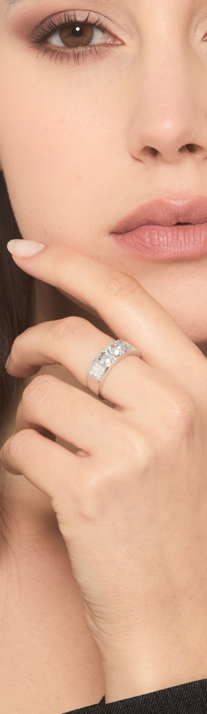 Bandring Aquamarin Ring mit Diamanten Weißgold 18K