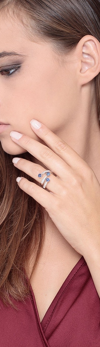 Weißgold Trilogie Ring mit drei Saphiren und Diamanten