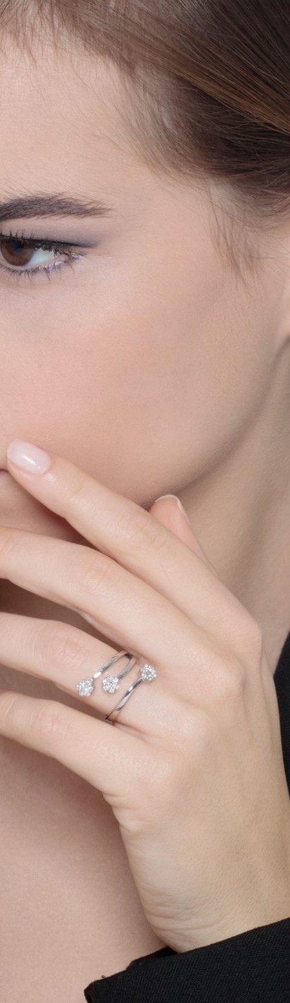 Damenring Trilogie aus Weißgold 18k mit Diamanten, Farbe H, Reinheit VS. Kollektion Illusion.