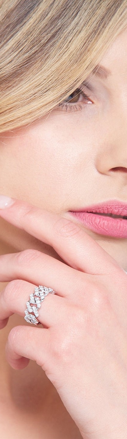Cuban Link Ring aus 18k Weißgold mit Diamanten