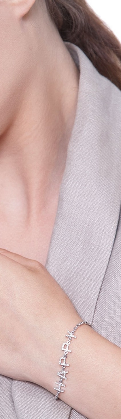 Buchstabenarmband HAPPY aus Weißgold und Diamanten