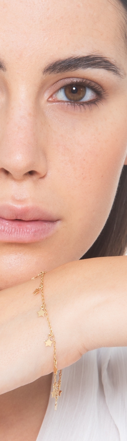 Gelbgold 750 Armband mit Sternen und einem Glöckchen