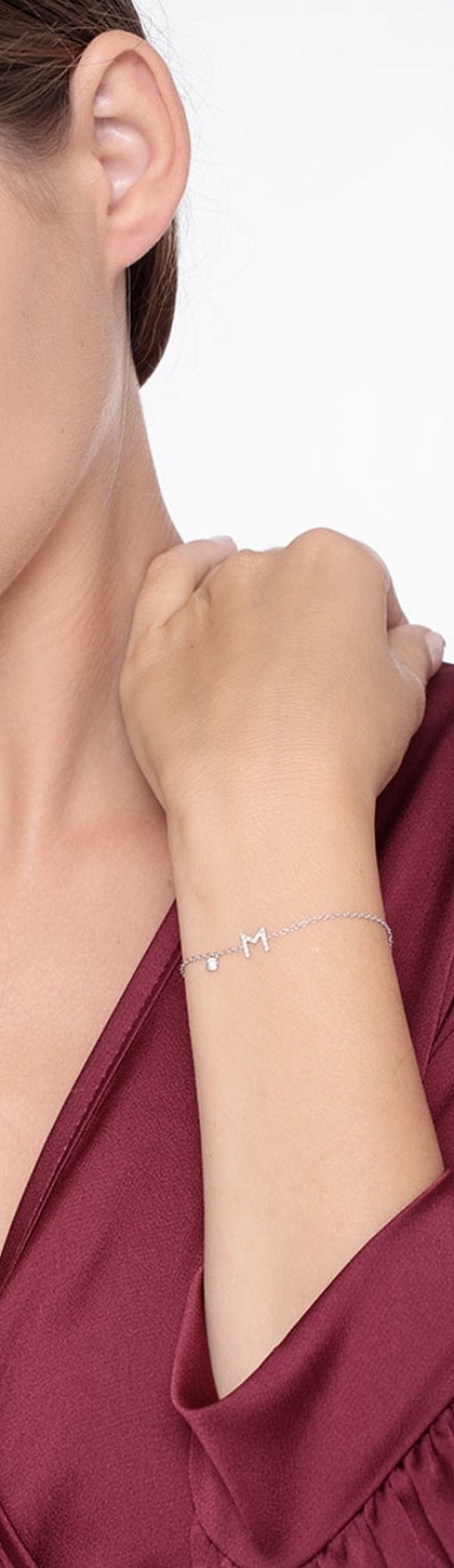 Weißgold Armband mit Buchstabe M aus Diamanten