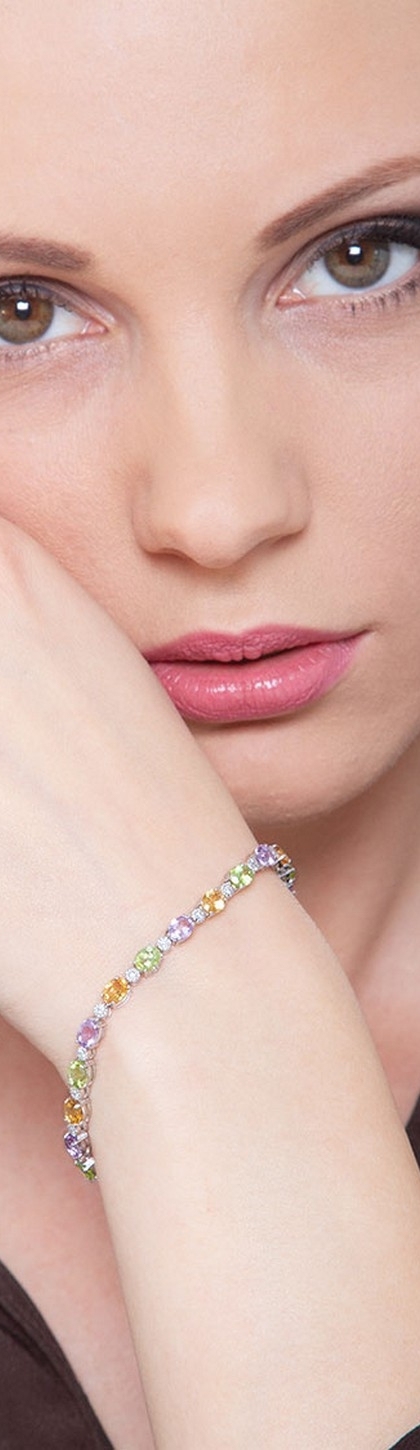 Weißgold Armband mit Amethyst, Peridot, Citrin Rainbow