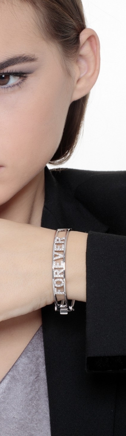 Armreif aus Weißgold mit Diamanten-Buchstaben FOREVER
