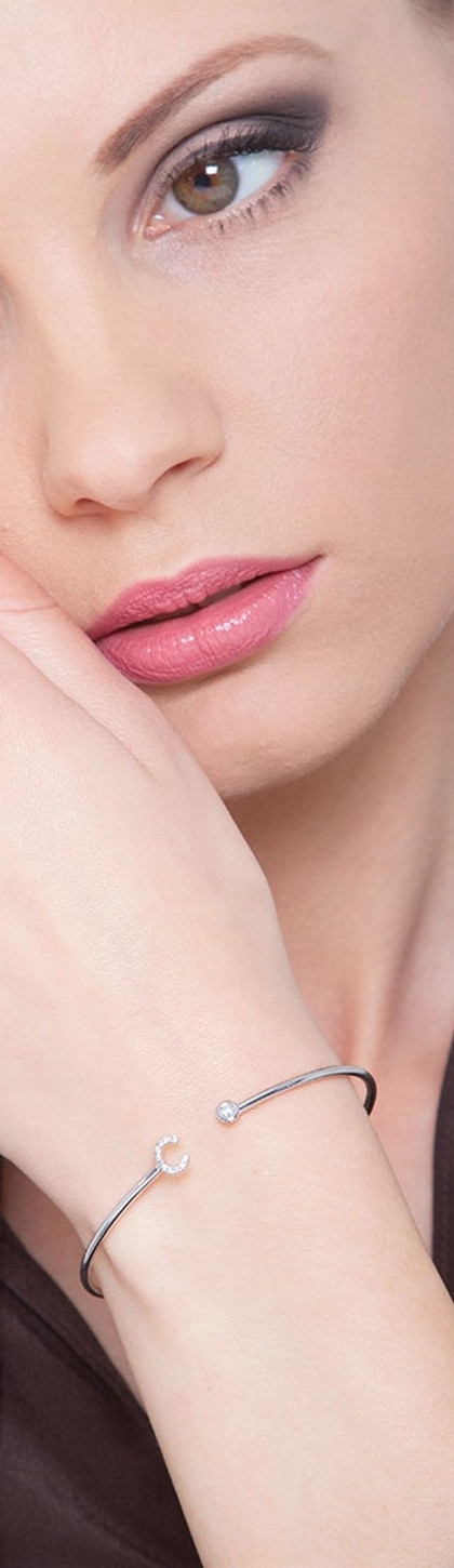 Armreif mit Buchstabe C aus Weißgold mit Diamanten