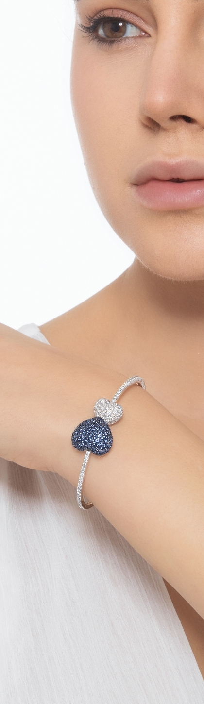 Armreif TOI&MOI Weißgold 18K mit zwei Herzen aus Saphiren und Diamanten