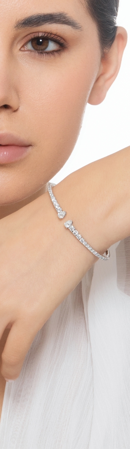 Weißgold 18K Armreif mit Brillanten und zwei Diamanten Tropfenschliff