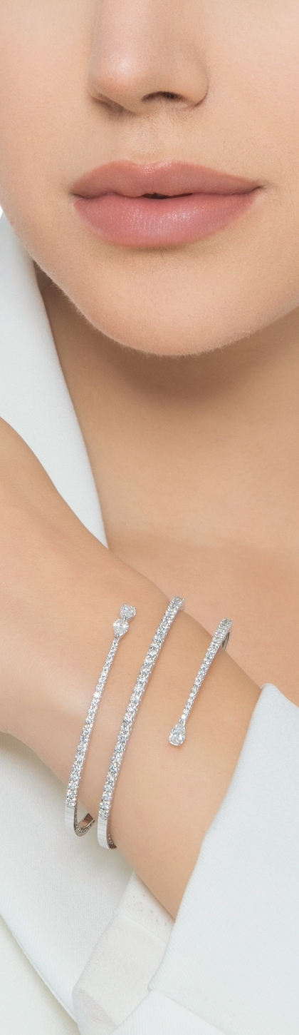Weißgold 18K spiralförmiges Armband mit Brillanten und 3 Diamanten Tropfenschliff