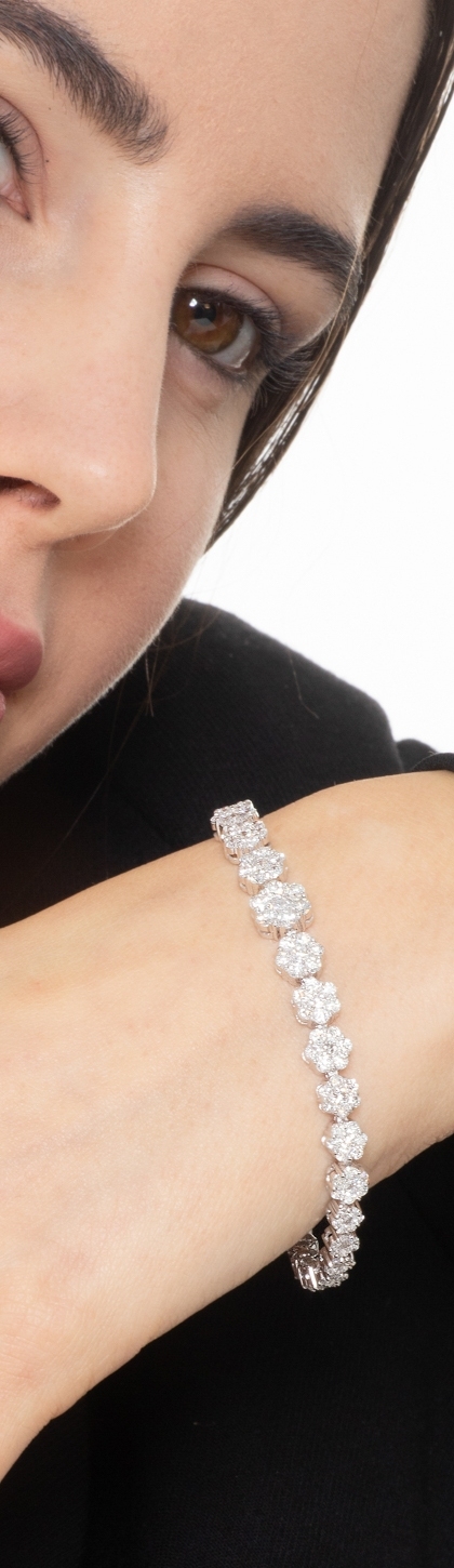 Weißgold Armband mit 33 Diamant-Blumen ILLUSION
