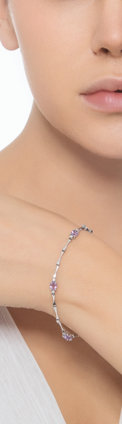 Weißgold 18K Damenarmband mit Amethysten und Brillanten