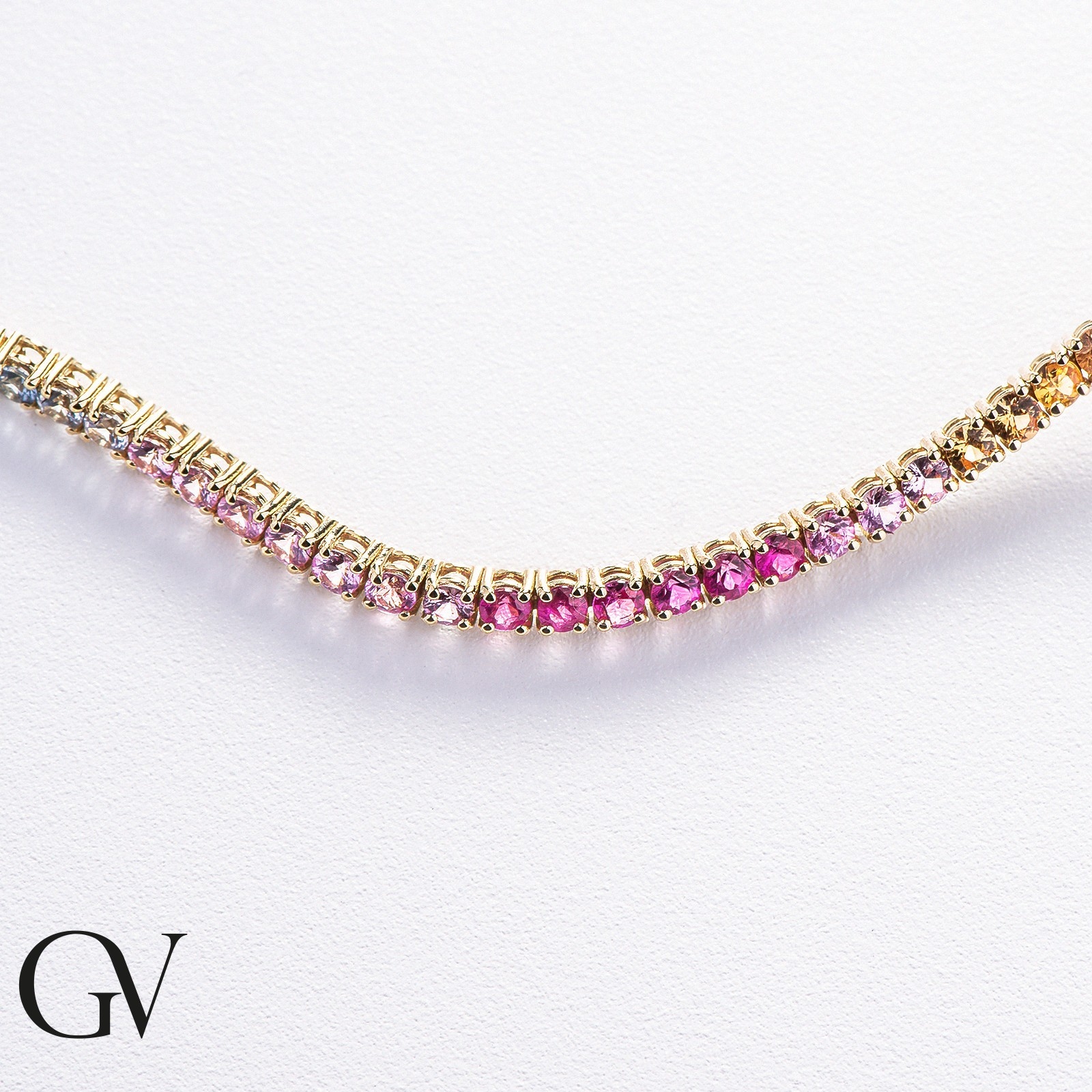 Saphir Armband Tennis aus 18K Gold Rainbow Multicolor