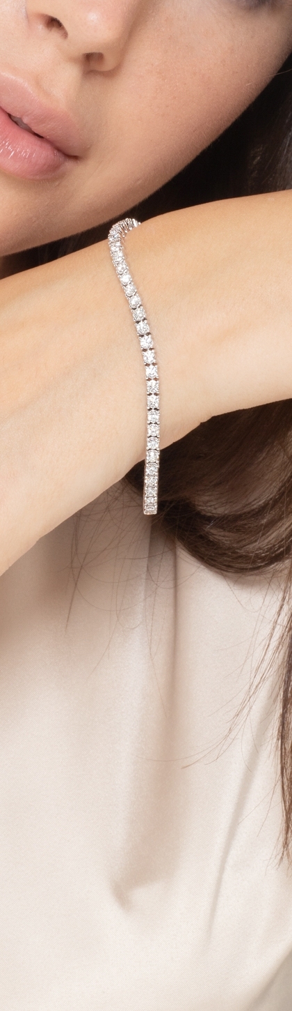 Tennisarmband mit Diamanten, Farbe H, Reinheit VS, Brillantschliff aus Weißgold 18k. Das Armband ist ungefähr 3,15 mm breit. Das Gesamtkarat des Armbands ändert gemäß der Größe.