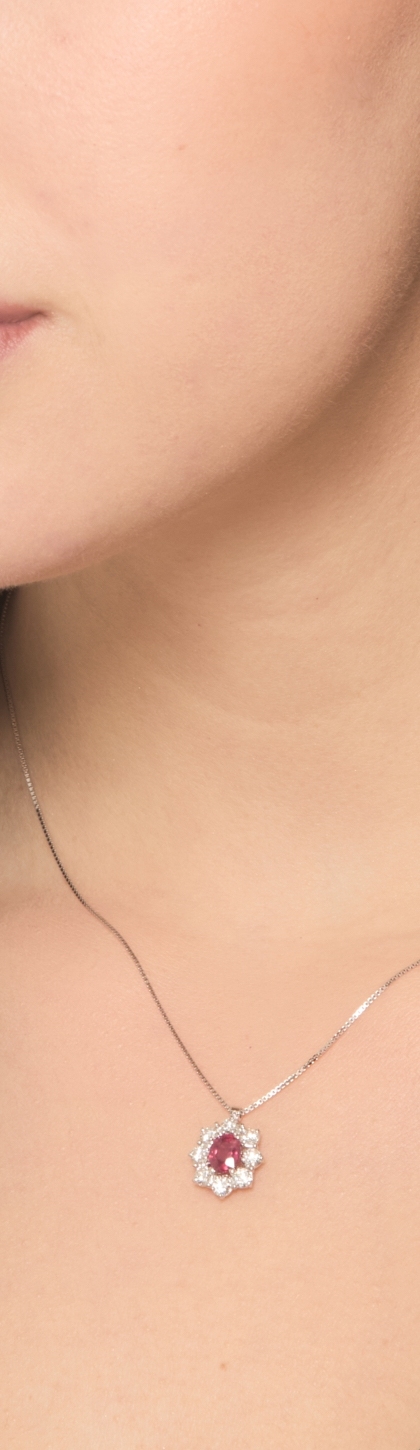 18K Weißgold Halo Kette mit Rubin und Diamanten