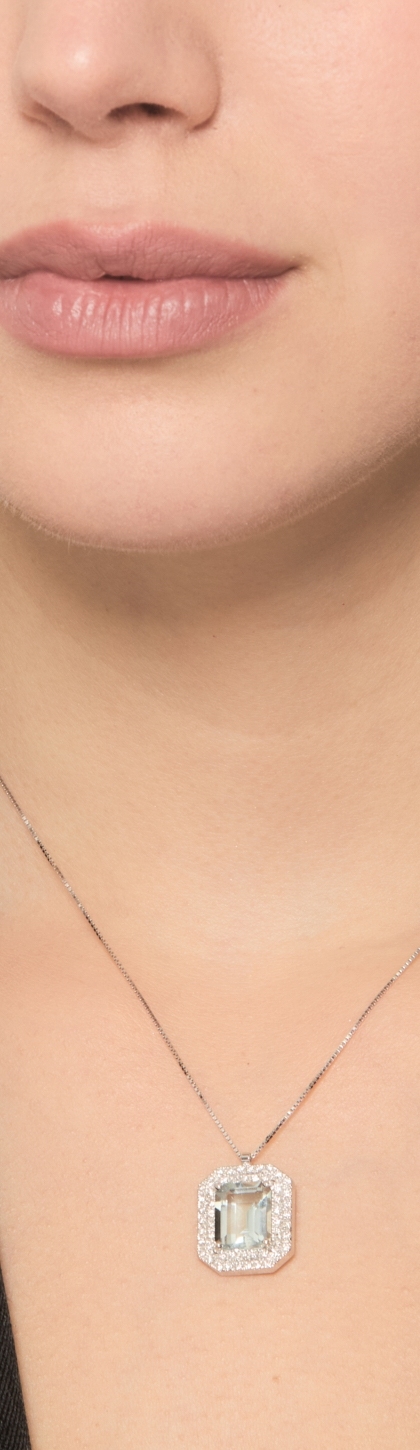 Damenkette aus 18K Weißgold mit Aquamarin und Diamanten