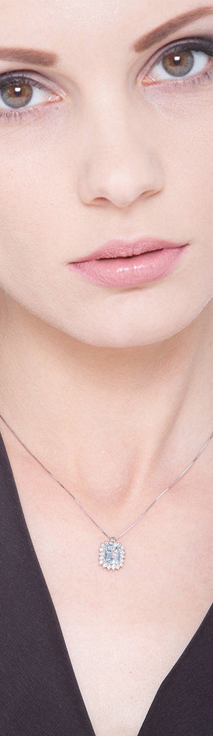 Halo Kette mit Aquamarin und Diamanten Weißgold