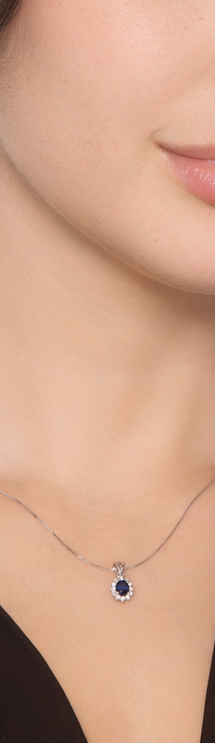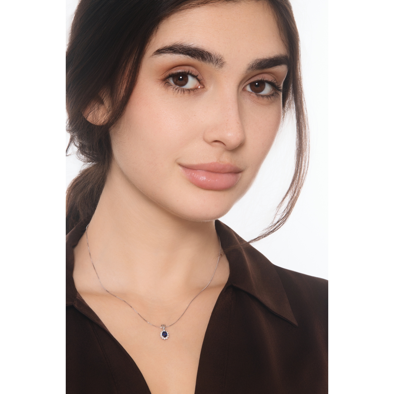 Halo Kette Saphir und Diamanten Weißgold 18K