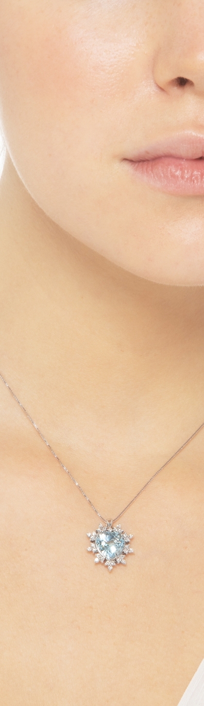 Herzkette Weißgold Aquamarin 9 Diamanten-Blütenblätter