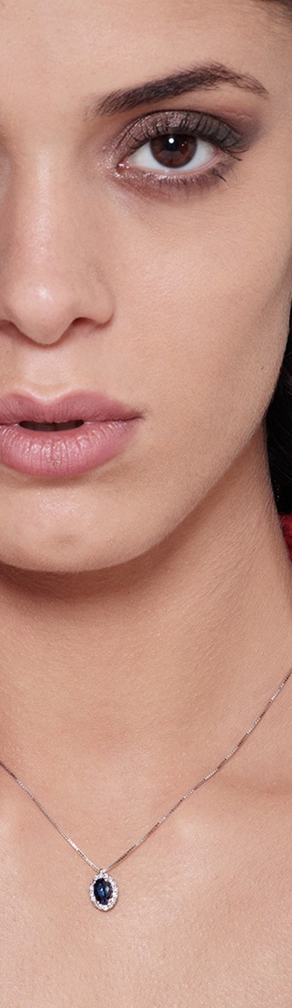 Lady Diana Damenkette Diamanten Saphir blau Weißgold